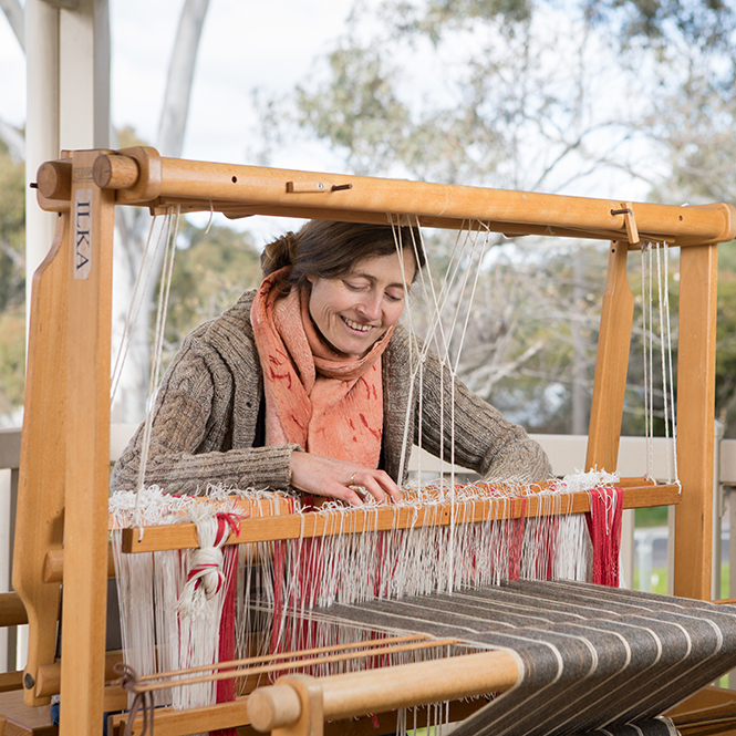 Ilka is a weaver and natural dyer who taught at RMIT and the Handweaver’s Guild for many years before localising her offerings here in Castlemaine. She teaches Handloom Weaving courses (from introductory to advanced), Inkle and Backstrap Weaving, Natural Dyeing with plants and Braided Rag Rug workshops.